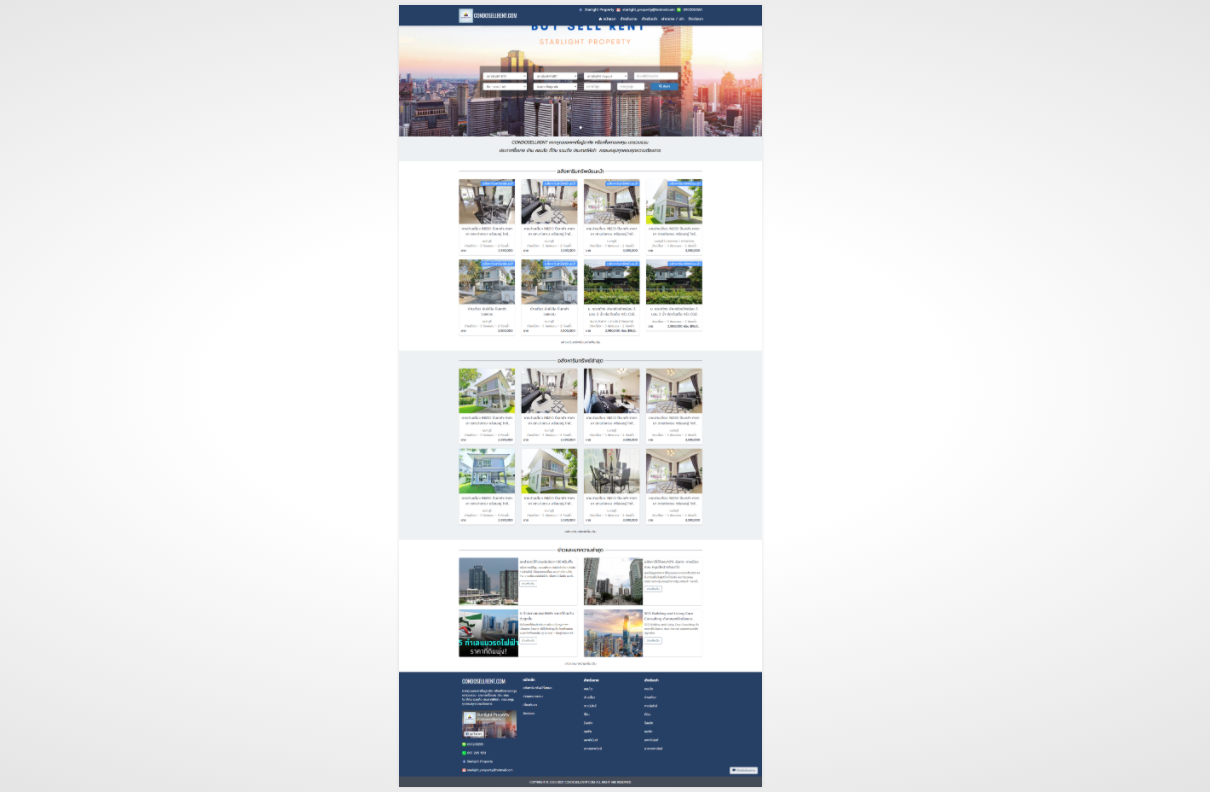 #หน้าแรก -> เมนู, สไลด์, ข้อมูลแนะนำเว็บไซต์, อสังหาริมทรัพย์แนะนำ เป็นต้น #หน้าแสดงอสังหาริมทรัพย์ -> อสังหาริมทรัพย์ทั้งหมด, แบ่งตามประเภท, แบ่งตามจังหวัด อื่นๆ #หน้ารายละเอียดอสังหาริมทรัพย์ -> ราคา, รีวิว, ข้อมูลติดต่อ, ห้องนอน, ห้องน้ำ อื่นๆ #หน้าข่าวหรือบทความ -> แสดงรายการข่าวทั้งหมด -> #หน้ารายละเอียดข่าว # ระบบค้นหา ชื่อ ทำเล สถานีรถไฟ รหัสทรัพย์ ที่อยู่อาศัย คอนโดบ้าน ที่ดิน ห้องนอน ราคาต่ำสุด ราคาสูงสุด #หน้าเกี่ยวกับเรา #หน้าติดต่อ -> ข้อมูลติดต่อ, แผนที่ #ระบบแอดมิน สามารถเพิ่ม ลบ แก้ไข ตรวจสอบ ข้อมูลได้ตลอดเวลา