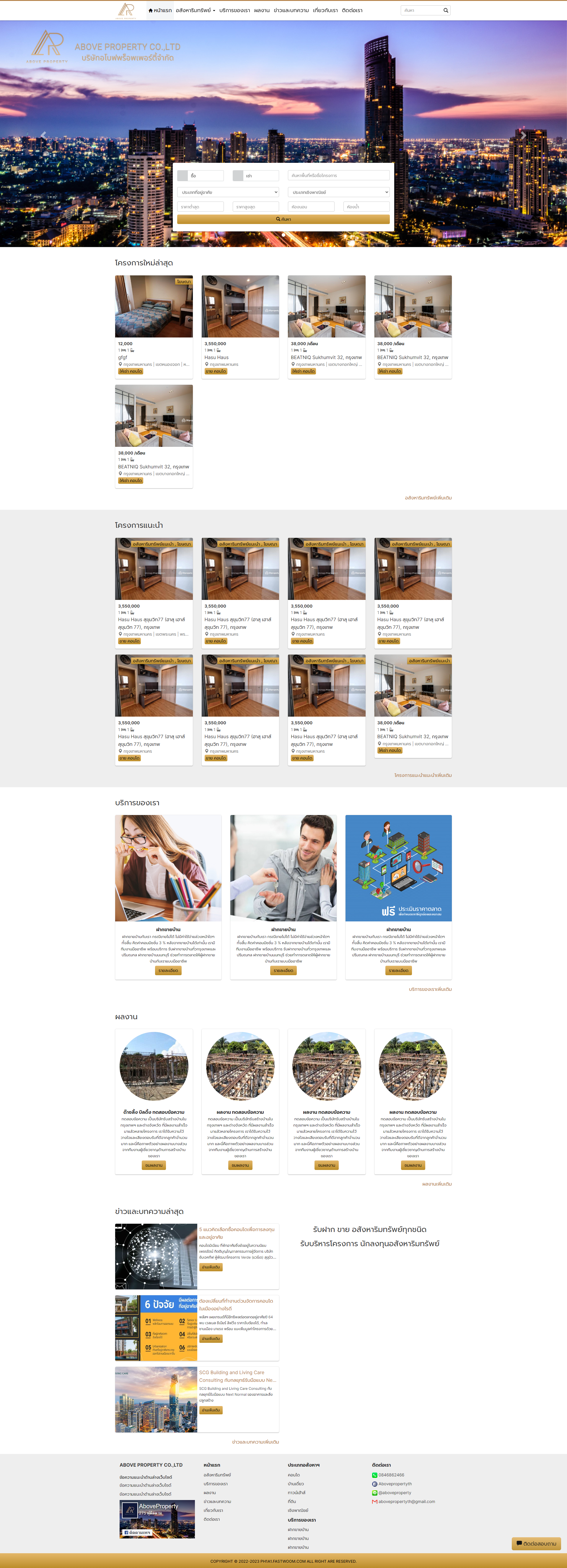 หน้าแรก อสังหาริมทรัพย์ บริการของเรา ผลงาน ข่าวและบทความ เกี่ยวกับเรา ติดต่อเรา