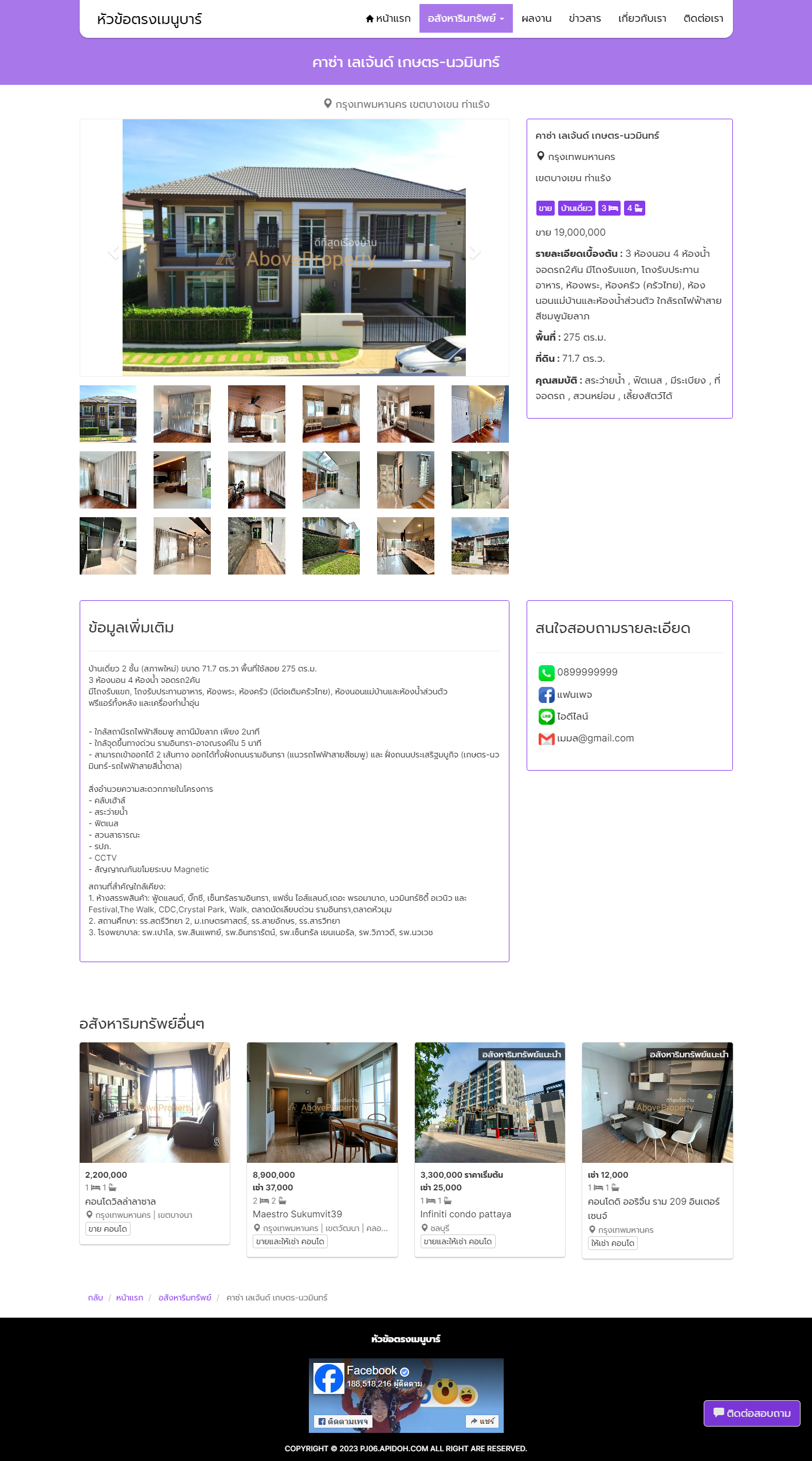 เมนูเว็บไซต์ หน้าแรก อสังหาริมทรัพย์ ผลงาน ข่าวสาร เกี่ยวกับเรา ติดต่อเรา