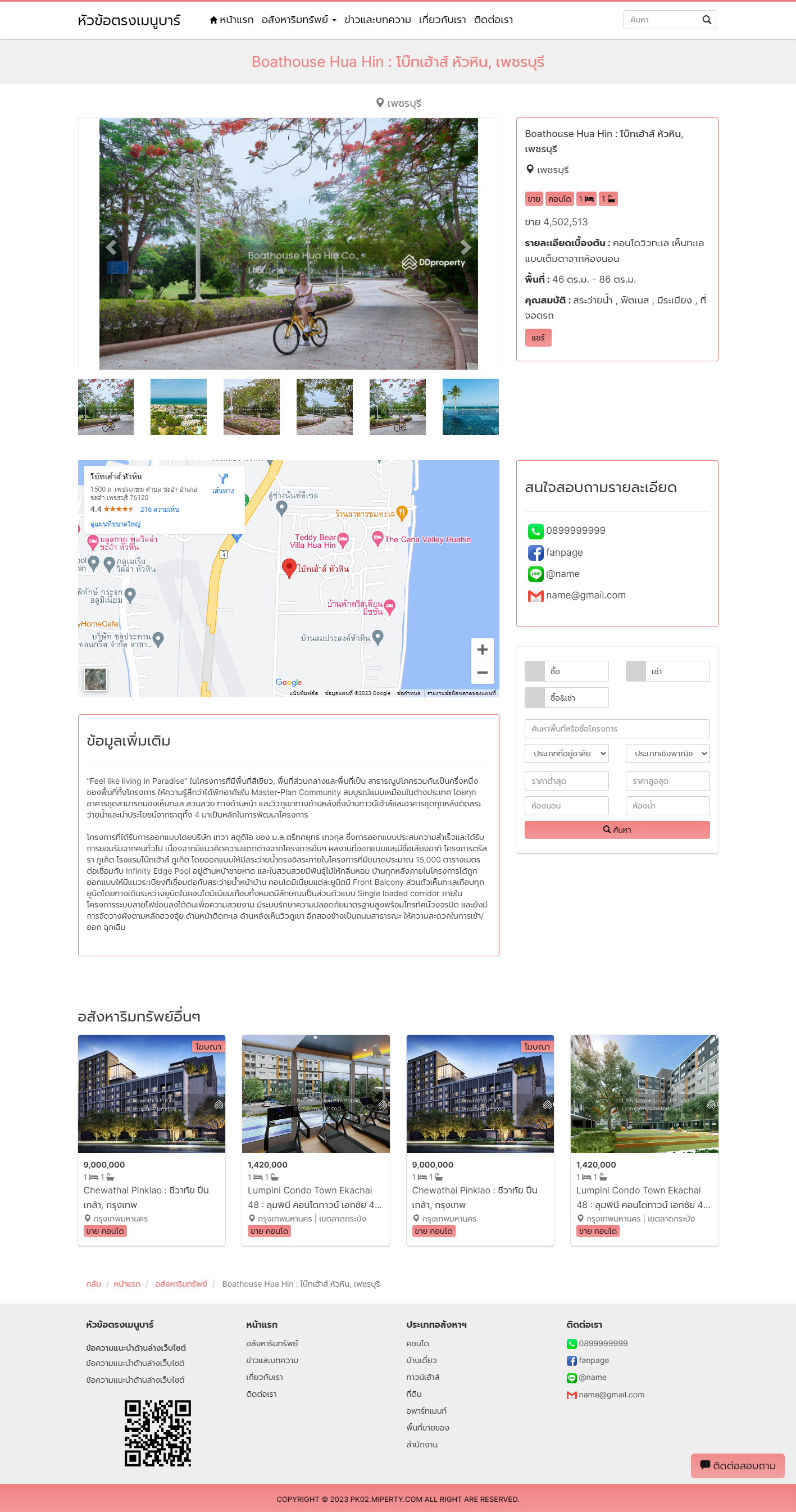 เว็บอสังหา เป็นแบบรายการสินค้า มีแผนที่ ภาพ และ วีดีโอสั้น