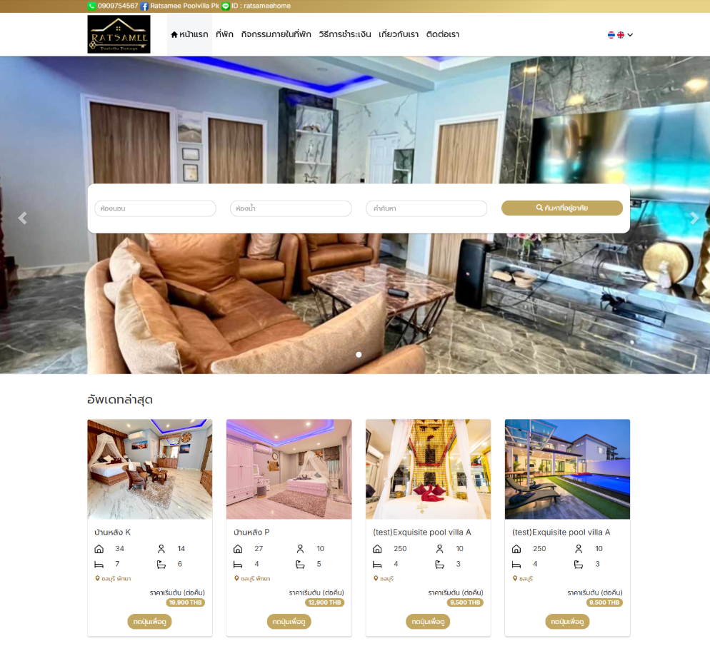 หน้าแรก ที่พัก กิจกรรมภายในที่พัก วิธีการชำระเงิน เกี่ยวกับเรา ติดต่อเรา